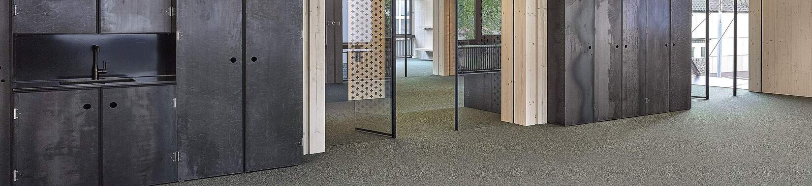 Fibres teintées dans la masse. Swiss Made, label GuT, TüVprofiCert, classe 33 avec résistance aux sièges à roulettes utilisés quotidiennement, difficilement inflammable avec certificat CE et AEAI, avec traitement anti-statique ou conducteur. Non directionnel, parfait pour les locaux humides, avec couche d'effacement, également disponible sous forme de module et de revêtement acoustique. 10 coloris.