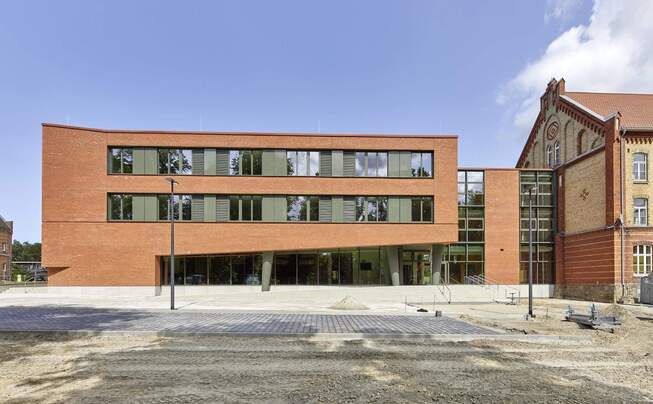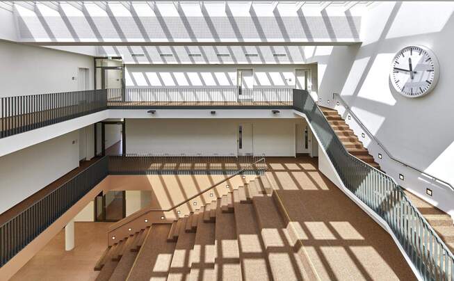 Met de uitbreiding van de regionale school in Neukloster is een plek ontstaan die niet alleen functioneel is, maar ook qua sfeer overtuigt. Heldere architectonische lijnen, een doordachte materiaalkeuze en het samenspel van kleuren en oppervlakken creëren ruimtes waarin leerlingen zich prettig voelen.